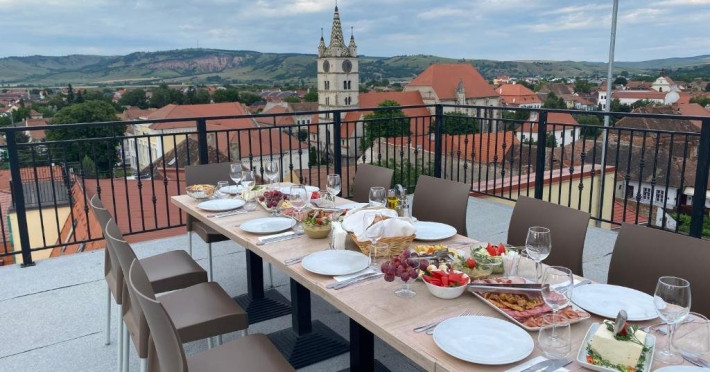 In restaurantul, terasa hotelului se pot servi preparate din bucataria romaneasca si internationala.
