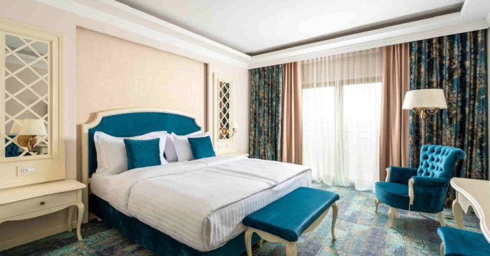 Hotelul dispune de camere duble 3 stele, 4 stele standard, 4 stele deluxe, apartamente 4 stele deluxe.