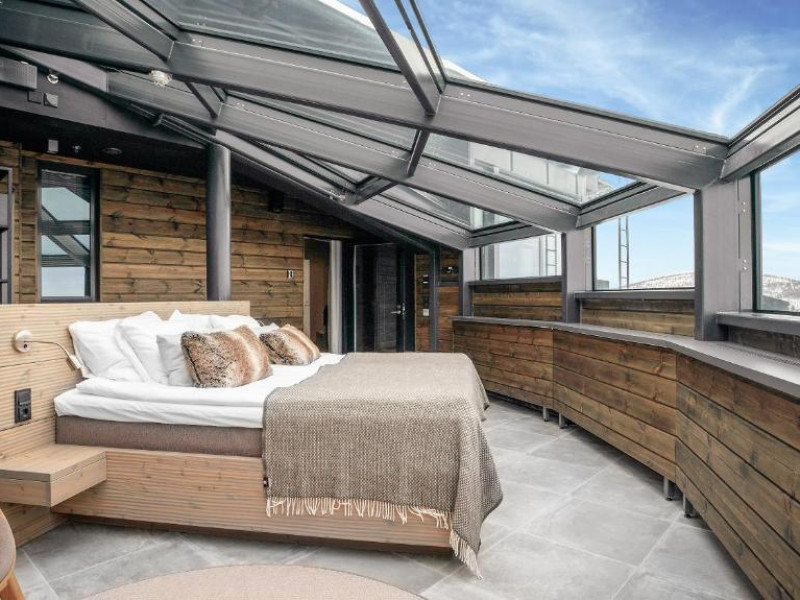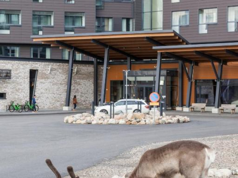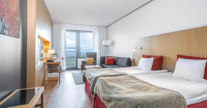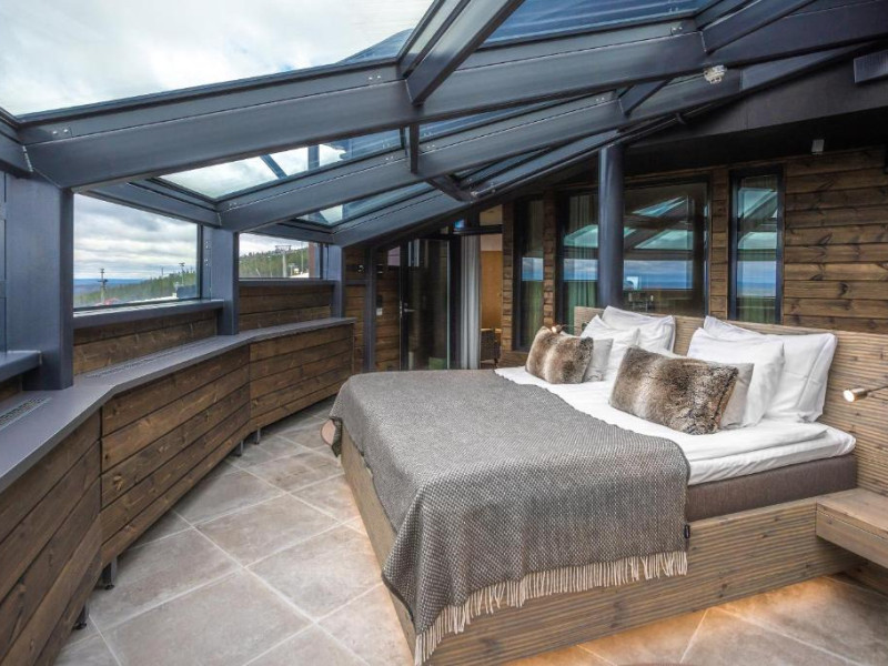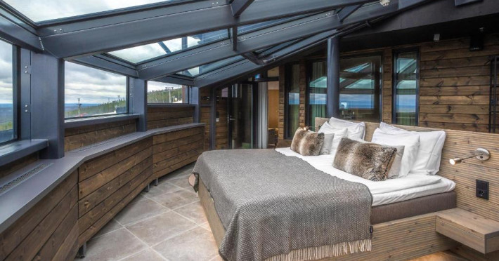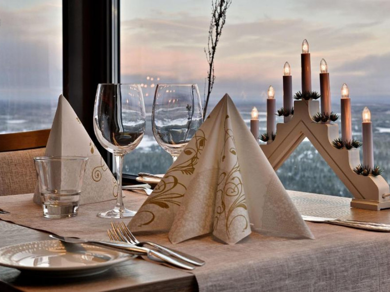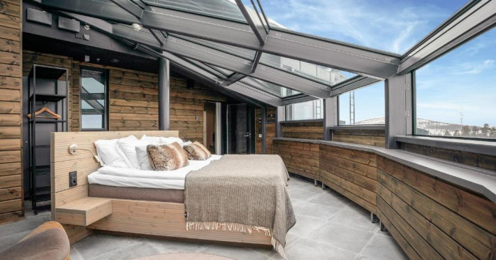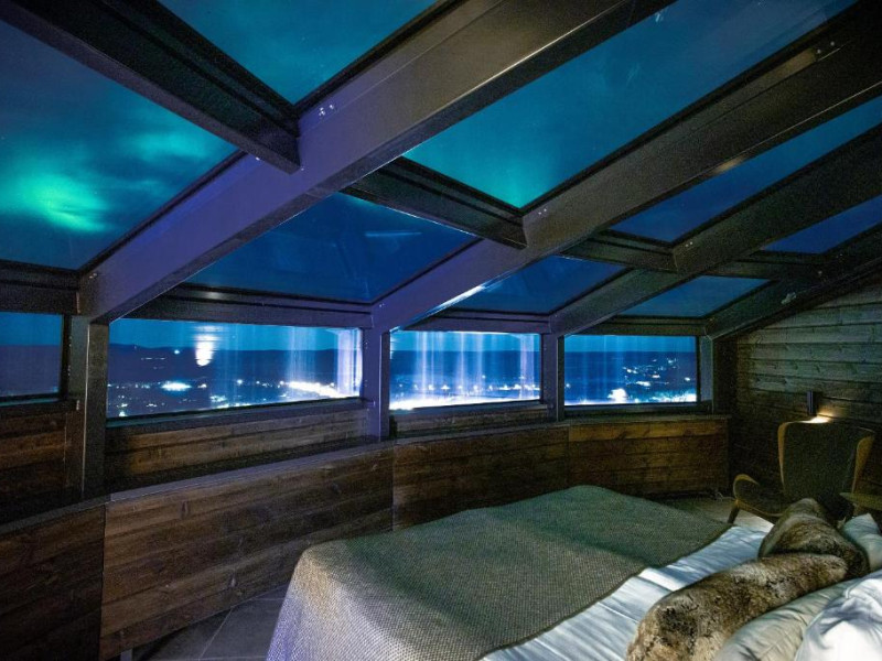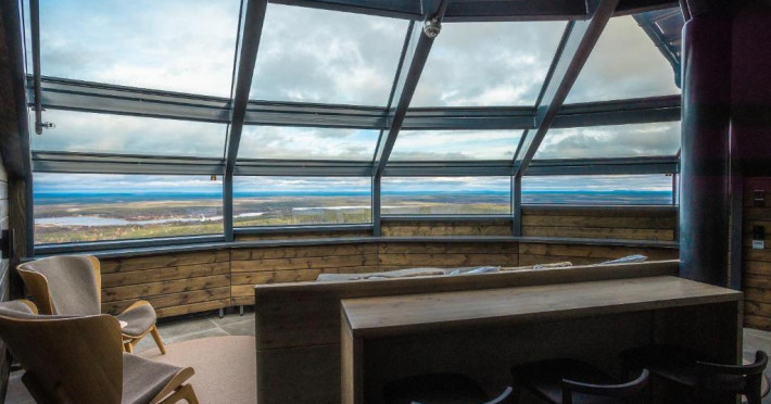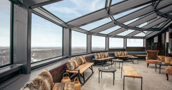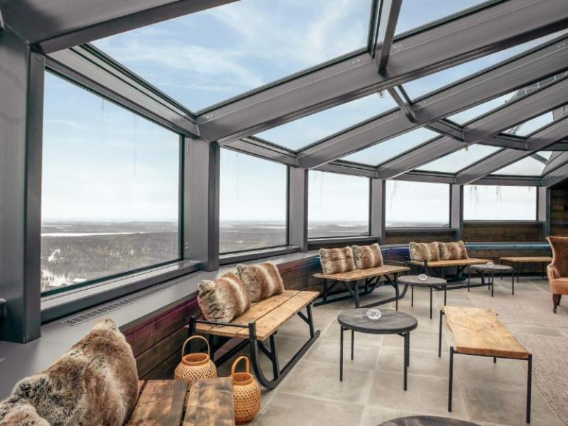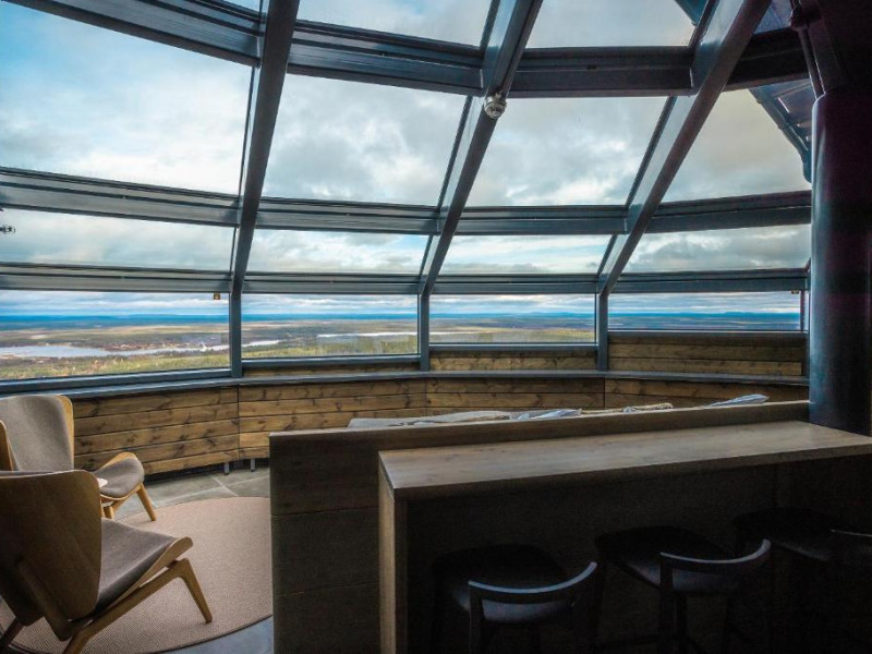 Camerele moderne beneficiază de ferestre panoramice mari, permițand oaspeților să admire peisajul nordic și, in sezonul potrivit, aurora boreală. Restaurantul panoramic de la ultimul etaj servește specialități locale intr-un cadru elegant, cu vedere la 360 de grade asupra imprejurimilor.