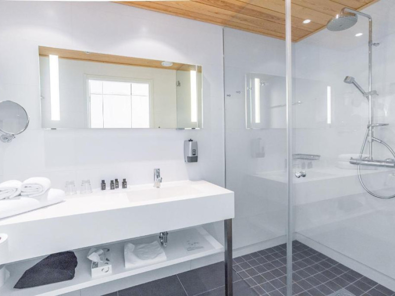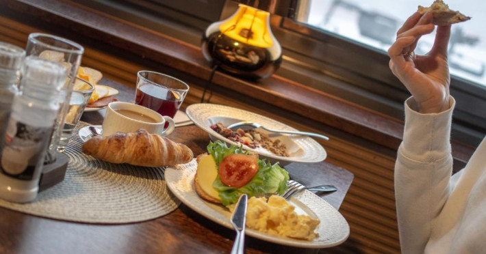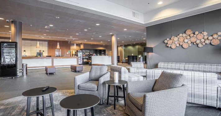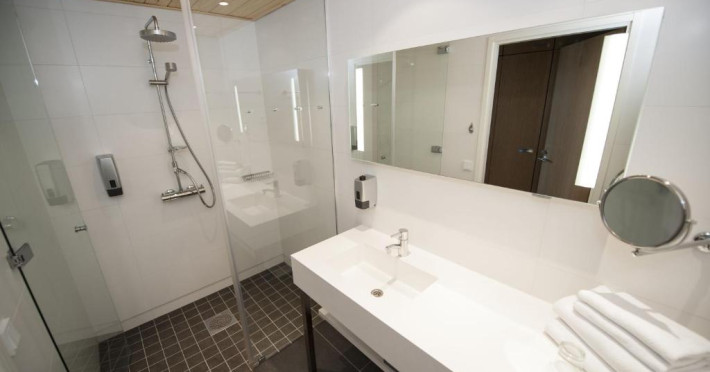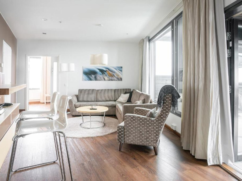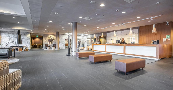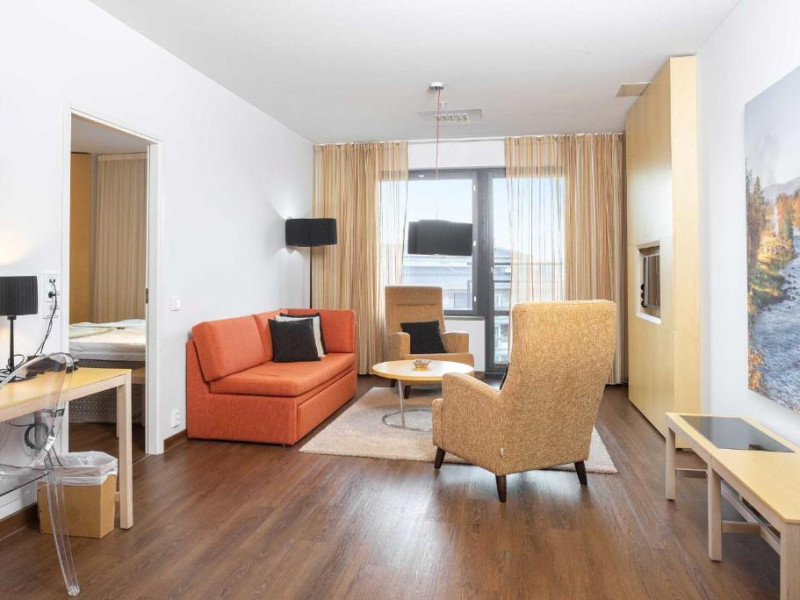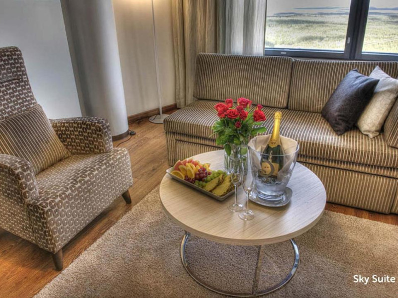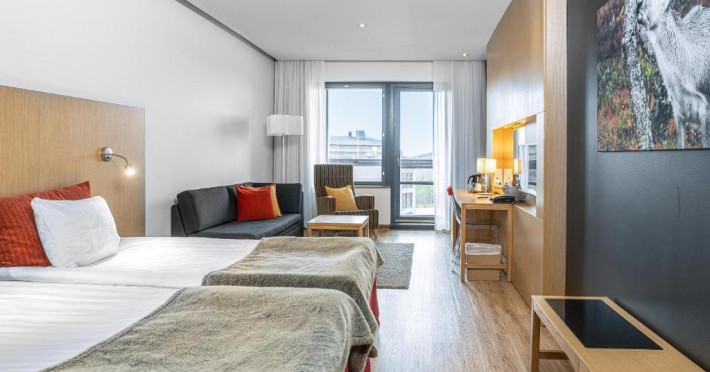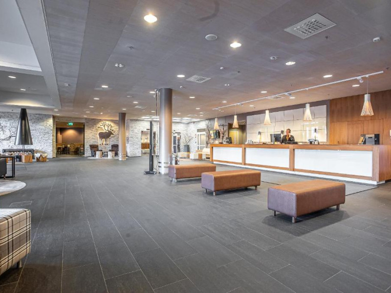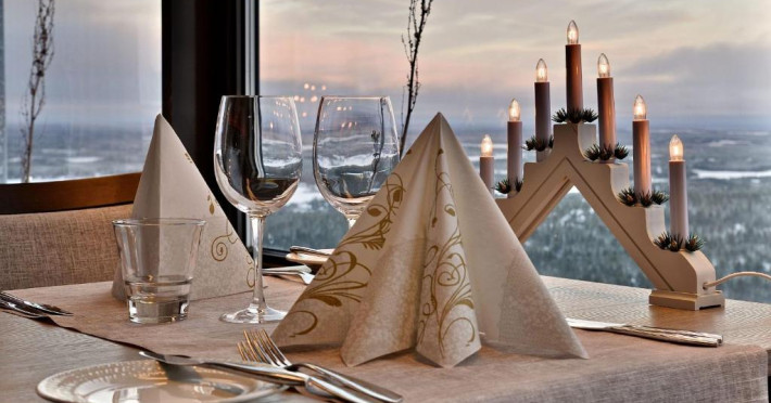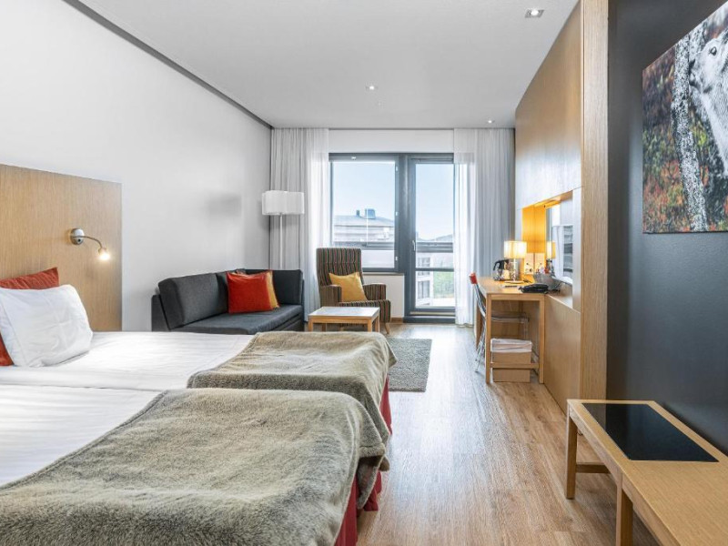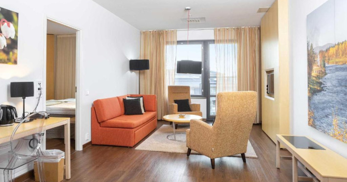 Camerele moderne beneficiază de ferestre panoramice mari, permițand oaspeților să admire peisajul nordic și, in sezonul potrivit, aurora boreală. Restaurantul panoramic de la ultimul etaj servește specialități locale intr-un cadru elegant, cu vedere la 360 de grade asupra imprejurimilor.