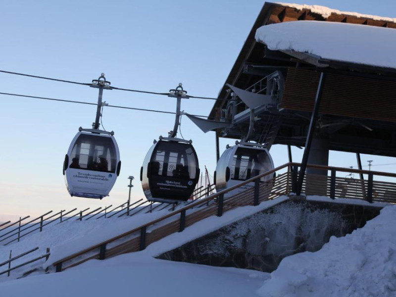 La doar cațiva pași se află centrul de activități Levi, unde turiștii pot rezerva excursii cu sania trasă de caini husky sau safari-uri cu snowmobilul.