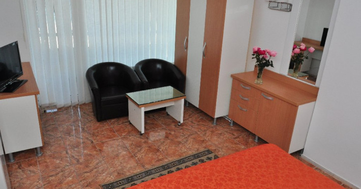 DESCRIERE UNITATE DE CAZAREIn intervalul 01.06 - 30.09 se asigura GRATUIT: 2 sezlonguri/ camera dubla, 3 sezlonguri/camera family si garsoniera, 4 sezlonguri/ apartament respectiv 1 sezlong/ camera single.