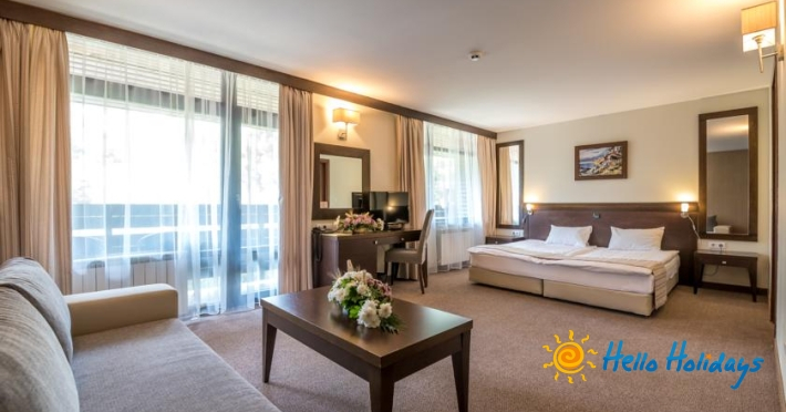 televizor, telefon, aer conditionat centralizat, acces la internet (contra cost) mini bar (contra cost), seif, room service, baie cu dus, uscator de par, terasa sau balcon.
