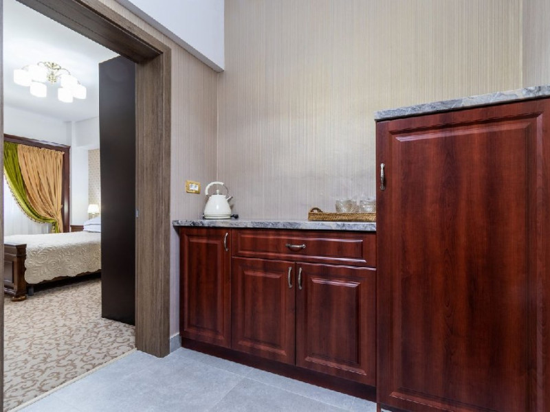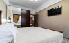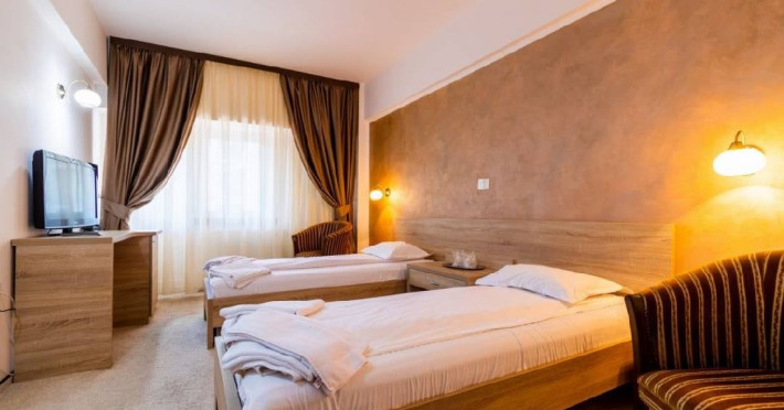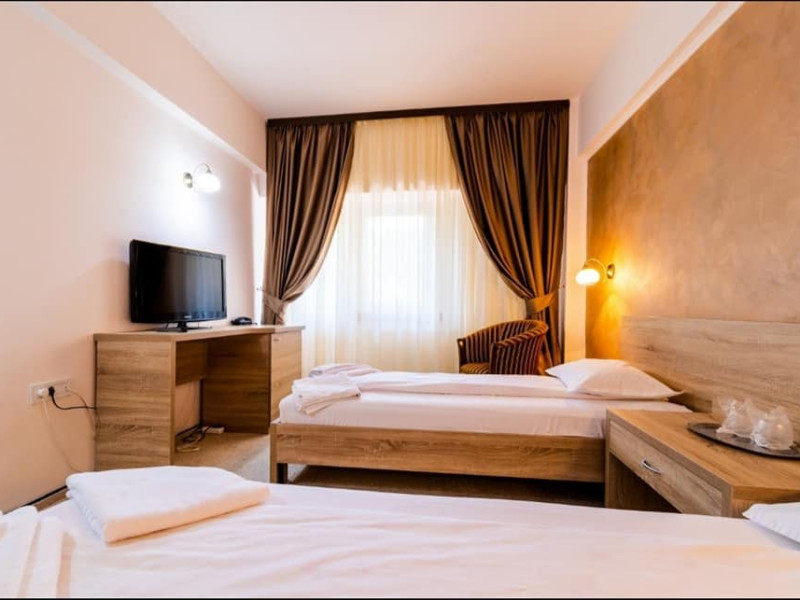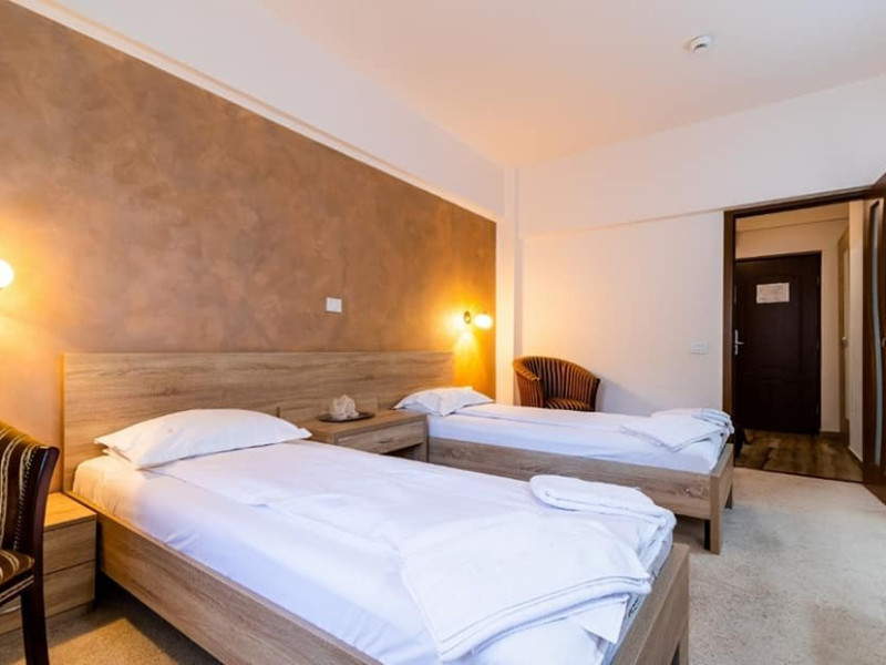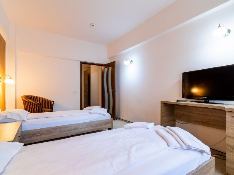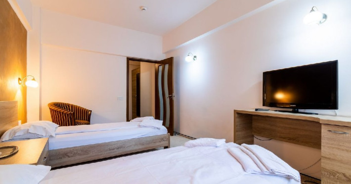 Camerele duble sunt cu doua paturi separate (twin) sau pat matrimonial, fotolii, TV, internet WiFi, baie proprie cu dus si produse cosmetice, uscator de par, balcon.