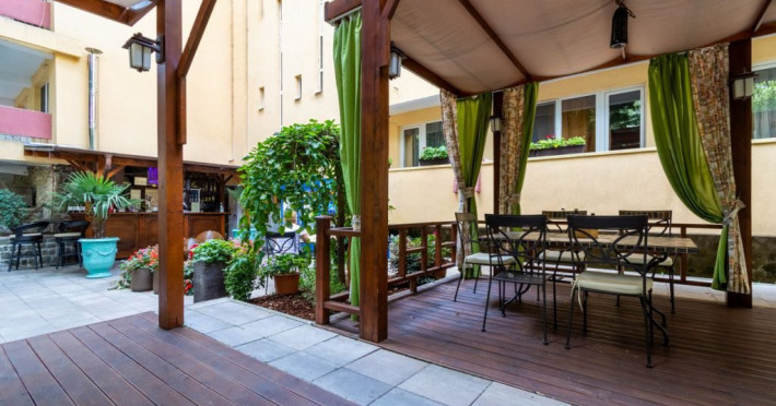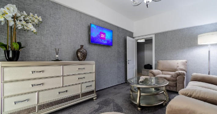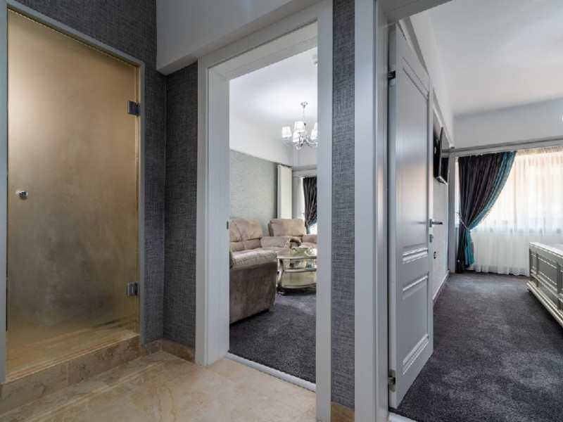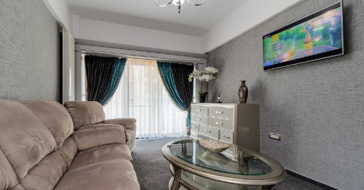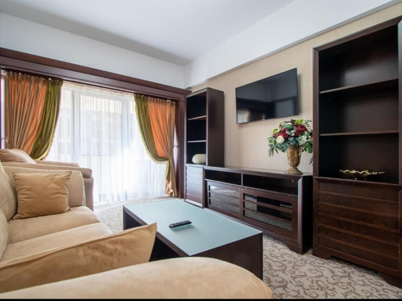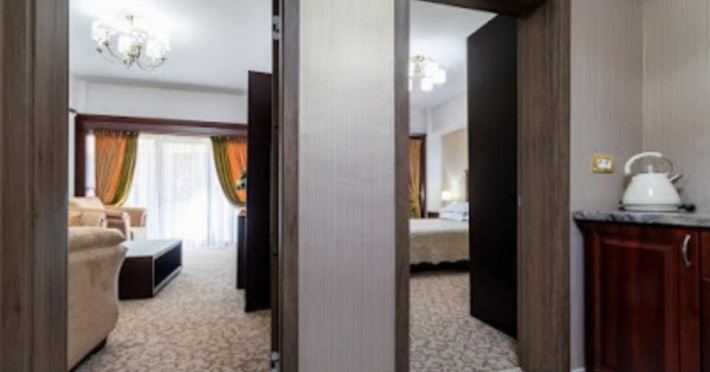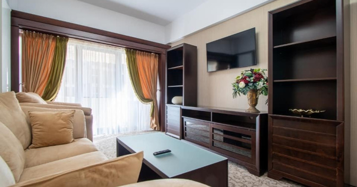 Apartamentele sunt formate dintr-un dormitor cu pat matrimonial, un living cu canapea si fotolii, baie cu dus si produse cosmetice, uscator par, un hol cu frigider si vesela/fierbator pentru preparat si servit ceai/cafea instant. Dormitorul si livingul sunt dotate cu sistem TV.