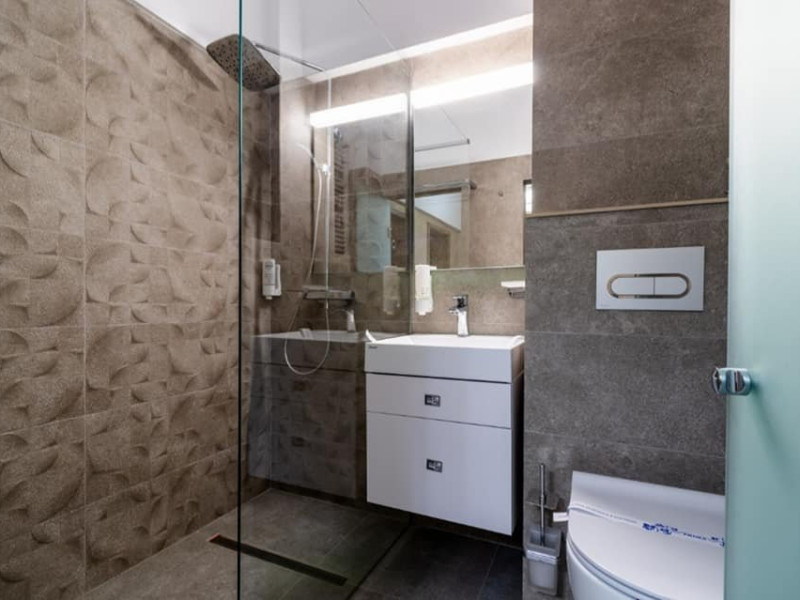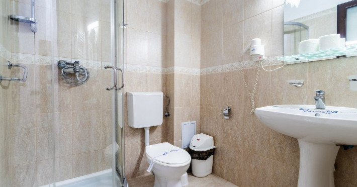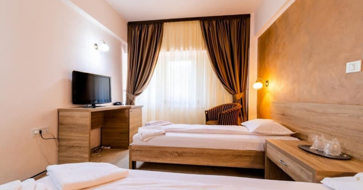 Camerele duble sunt cu doua paturi separate (twin) sau pat matrimonial, fotolii, TV, internet WiFi, baie proprie cu dus si produse cosmetice, uscator de par, balcon.
