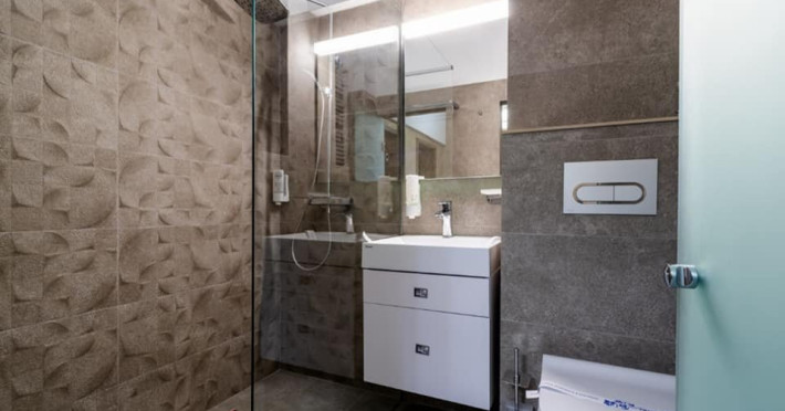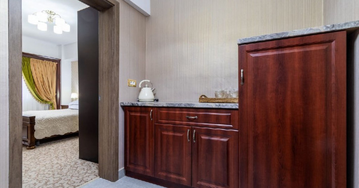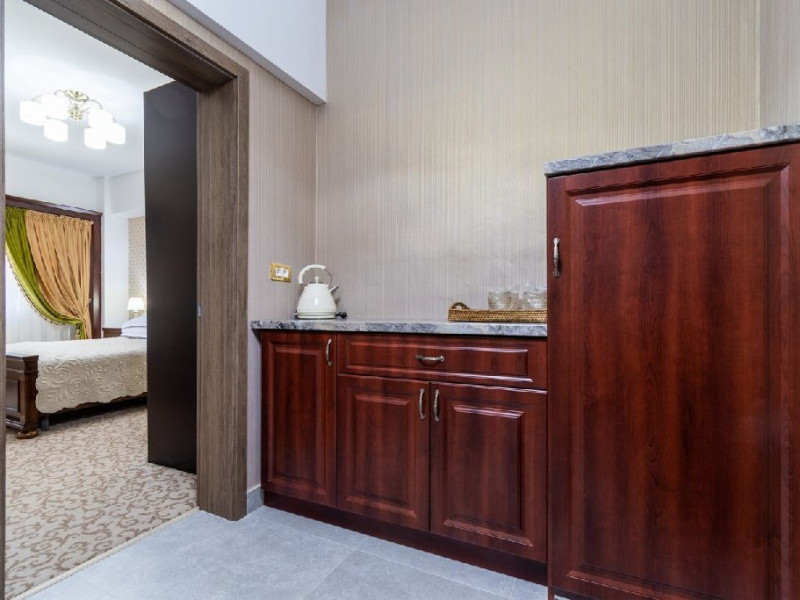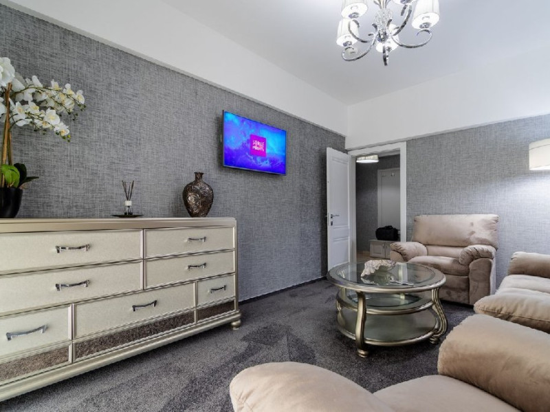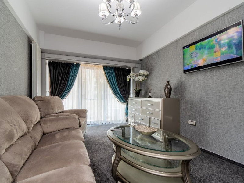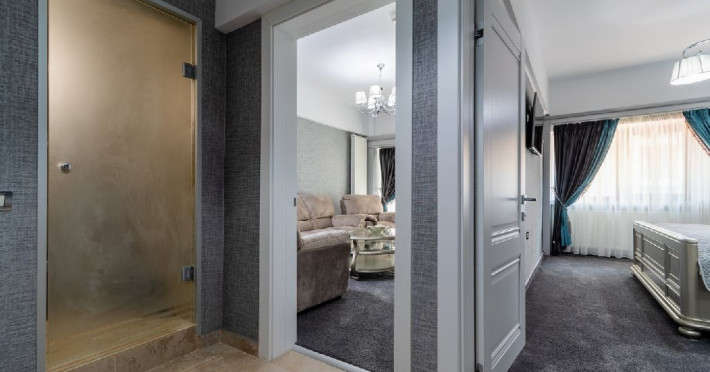 Apartamentele sunt formate dintr-un dormitor cu pat matrimonial, un living cu canapea si fotolii, baie cu dus si produse cosmetice, uscator par, un hol cu frigider si vesela/fierbator pentru preparat si servit ceai/cafea instant. Dormitorul si livingul sunt dotate cu sistem TV.