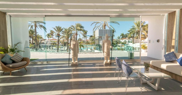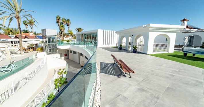 Situată in apropiere de renumitele Dune din Maspalomas si de terenul de golf, această proprietate este locul ideal pentru a petrece vacanțe de neuitat in fiecare perioadă a anului. Are o zonă doar pentru adulți in solar, cu piscină privată si cadă cu hidromasaj.