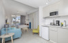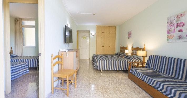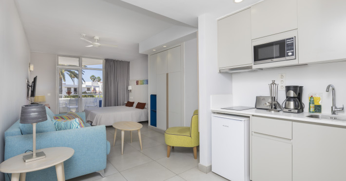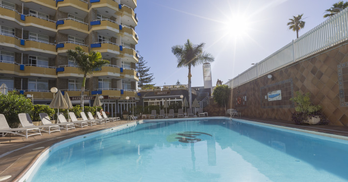 About 100 m from a public sandy beach is located the aparthotel Hotel LIVVO Veril Playa. The nearest bars and restaurants can be found at a distance of around 1 km. On the beach are cushions available. Cold drinks are served at the beach bar. There is also a promenade here where you can go for a stroll. The hotel is equipped with a 24h reception, internet access, a lift, a shop as well as a first aid kit. In the outdoor area of the property you will find a pool (open all year), where sun loungers and sun umbrellas are available for free. There is also an ironing service. American Express, Euro/Master Card and Visa are accepted as means of payment. Due to its barrier-free facilities , such as barrier-free entrances and wheelchair accessible rooms, the hotel is also suitable for wheelchair users. Catering As catering services the hotel offers half board and breakfast only. Breakfast is offered from the buffet. Distances- Pharmacy: approximately at 1 km