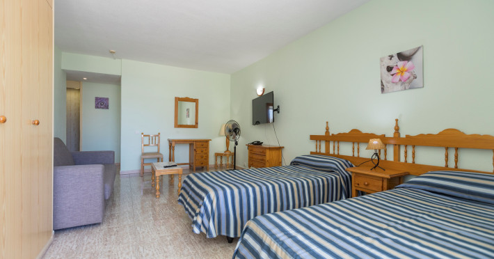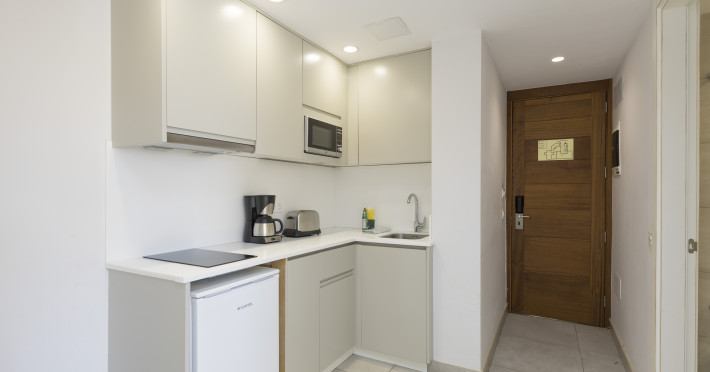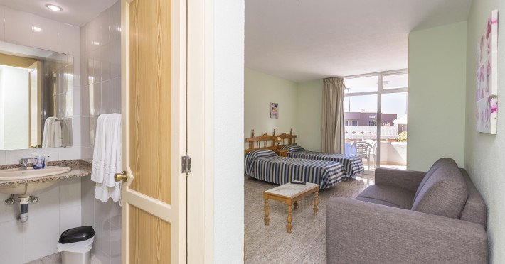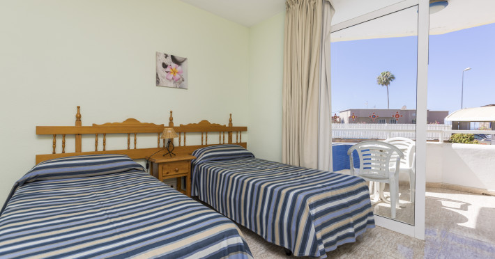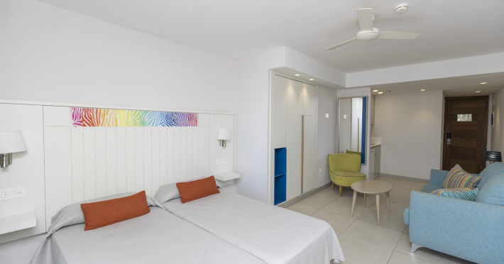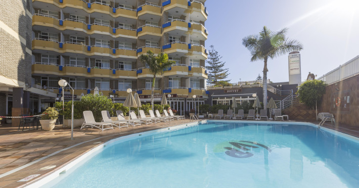 About 100 m from a public sandy beach is located the aparthotel Hotel LIVVO Veril Playa. The nearest bars and restaurants can be found at a distance of around 1 km. On the beach are cushions available. Cold drinks are served at the beach bar. There is also a promenade here where you can go for a stroll. The hotel is equipped with a 24h reception, internet access, a lift, a shop as well as a first aid kit. In the outdoor area of the property you will find a pool (open all year), where sun loungers and sun umbrellas are available for free. There is also an ironing service. American Express, Euro/Master Card and Visa are accepted as means of payment. Due to its barrier-free facilities , such as barrier-free entrances and wheelchair accessible rooms, the hotel is also suitable for wheelchair users. Catering As catering services the hotel offers half board and breakfast only. Breakfast is offered from the buffet. Distances