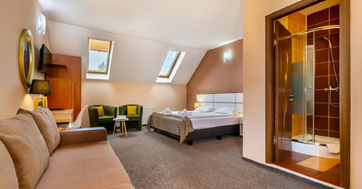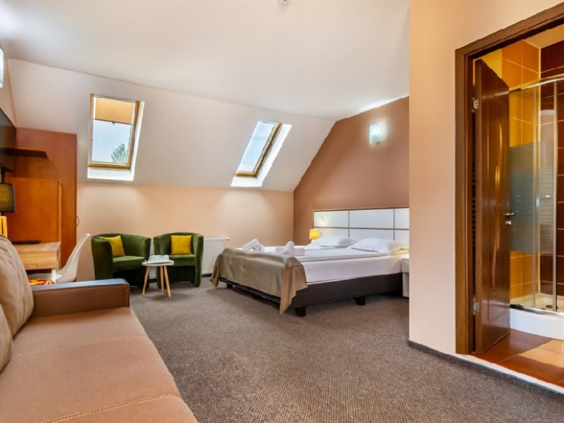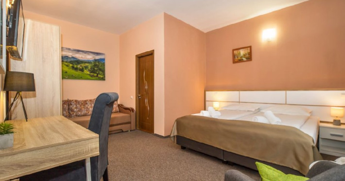 - Family 4- cu pat matrimonial 180/200 si canapea extensibila cu saltea matrimoniala 160/200 - capacitate max 4 pers.