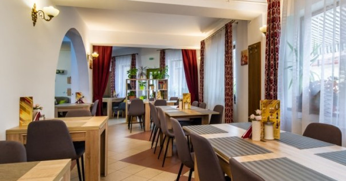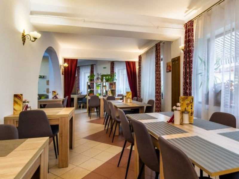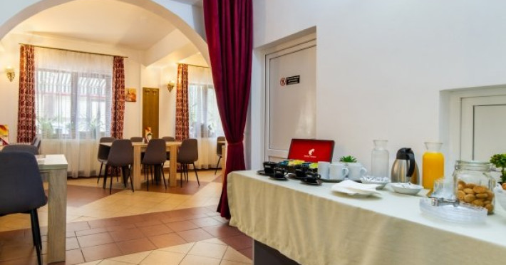 Micul dejun se serveste in salonul special amenajat.