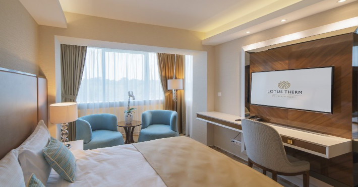 Filozofia noului hotel se bazeaza pe principii cheie aleospitalitatii. Lotus Therm va impresiona prinvaloarea si atentia oferita tuturor clientilor sai. Cu o capacitate de 180 de cameresi apartamente, din care