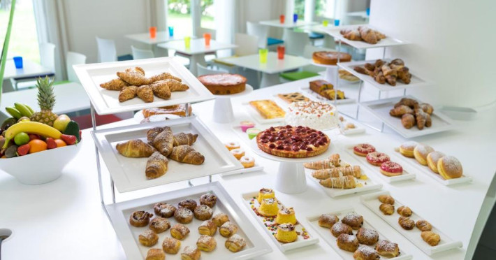 Guests can enjoy a generous buffet breakfast, including cakes, homemade biscuits, croissants and savoury options.