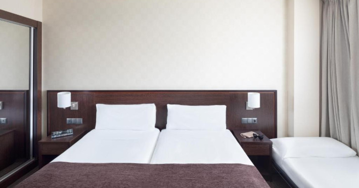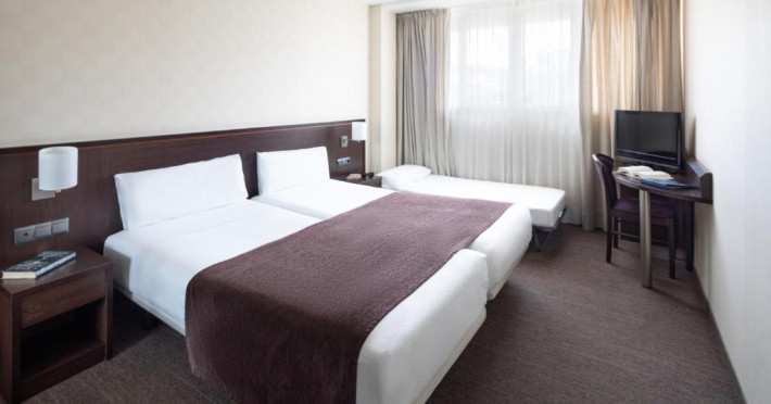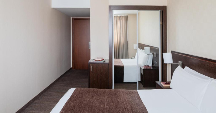Camere situate pe fațada principală și cu vedere la Avenida del Paralelo. Are două paturi și un pat suplimentar pentru a găzdui o a treia persoană.