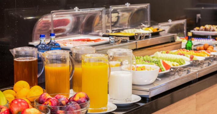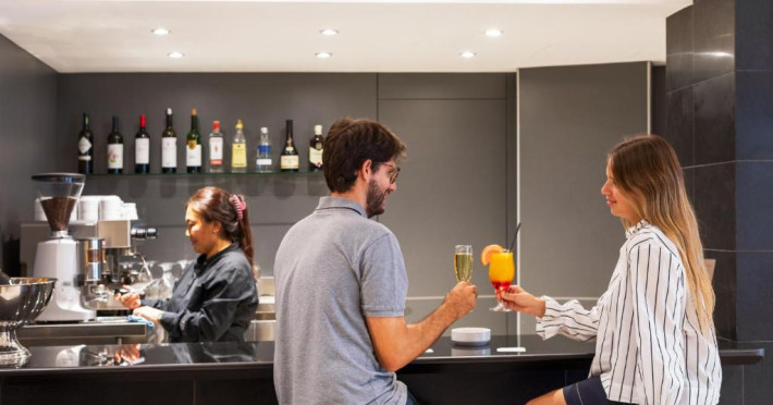 Oaspeții se pot bucura de un mic dejun tip bufet in cafe-barul de la Lugano. Restaurante pot fi găsite in Cartierul Gotic din Barcelona și pe Las Ramblas, la 20 de minute de mers pe jos. Stația de metrou Drassanes, la partea de jos a Las Ramblas, se află, de asemenea, la doar 2 stații de stația de metrou Poble Sec.