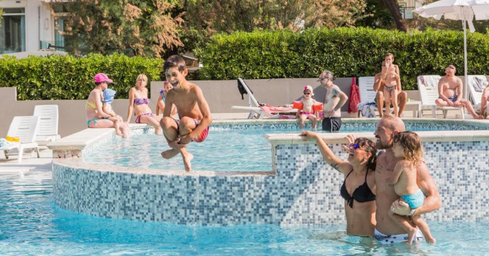 The swimming pool under the same ownership is outdoor and seasonal. In summer it is fully equipped with sun loungers and parasols. The pool is set 200 metres from the hotel, and also features a separate whirlpool.