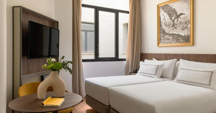 This splendid city hotel is situated at the pulsating heart of Madrid. The hotel enjoys an enviable location just a few steps away from the Prado Museum and within easy access of the treasure trove of captivating cultural and historical attractions this mesmerising city has to offer. Guests will find the Gran Via and Puerto del Sol within easy reach of the hotel, while the Atocha train station, which is situated just 500 metres away, places other tourist attractions within easy reach. The hotel enjoys a stunning architectural style which exudes sophistication. Guests are tempted into the regal elegance of the hotel interiors, which provide a serene ambience. The guest rooms are beautifully decorated, featuring luxurious style and rich wooden furnishings. The rooms offer a relaxing sanctuary away from the bustle of the city which lies just outside.Datorita dinamicitatii domeniului disponibilitatea ofertelor se modifica de la un moment la altul. De aceea ofertele sunt valabile in limita locurilor disponibile. Agentia nu este responsabila pentru eventualele neconcordante care pot aparea intre informatiile privind tarifele si alte detalii din site si informatiile primite in agentie. In aceste cazuri vor avea prioritate, intotdeauna, informatiile primite in agentie.