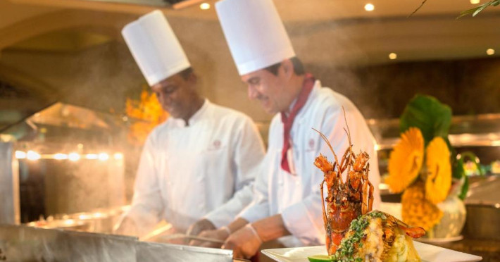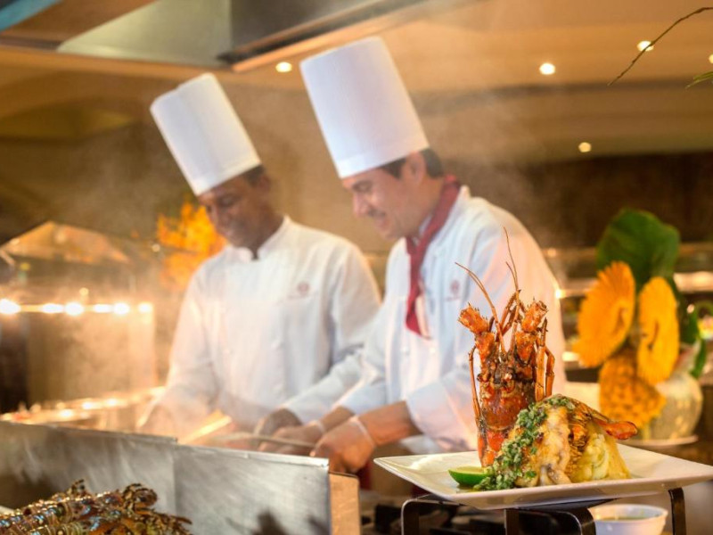 Restaurantele oferă o varietate de preparate din bucătăria internațională. Unele restaurante oferă muzică live si solicită un cod vestimentar.