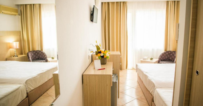 Facilități cameră dublă: pat matrimonial sau twin, baie proprie cu cadă sau duș, aer condiționat, televizor, telefon, internet Wifi, balcon.