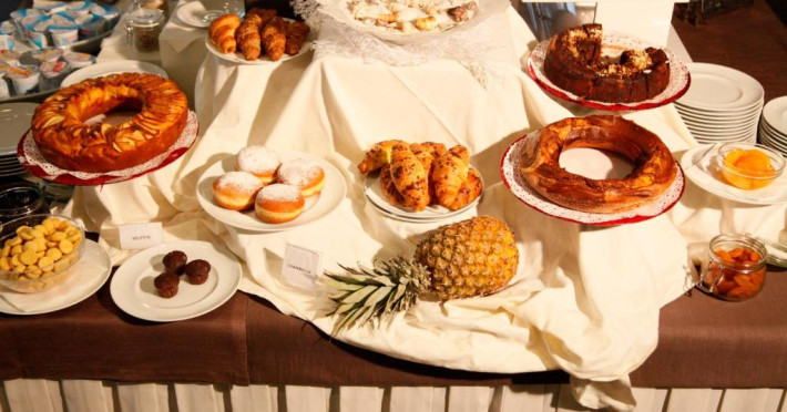 Micul dejun tip bufet in stil continental oferit zilnic include preparate dulci și sărate.
