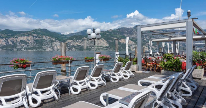 Vei fi direct pe malul lacului la Hotel Malcesine. Relaxați-vă pe terasa confortabilă la soare. Aici veți avea umbrele de soare, șezlonguri și vederi panoramice minunate ale lacului.