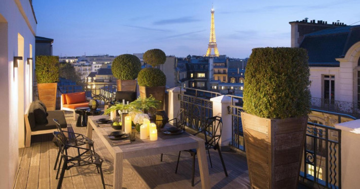 Unele camere au terasă privată cu vedere la Turnul Eiffel, unde oaspetii pot lua micul dejun, pranzul sau cina.
