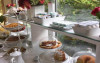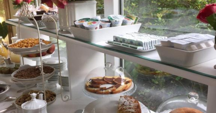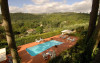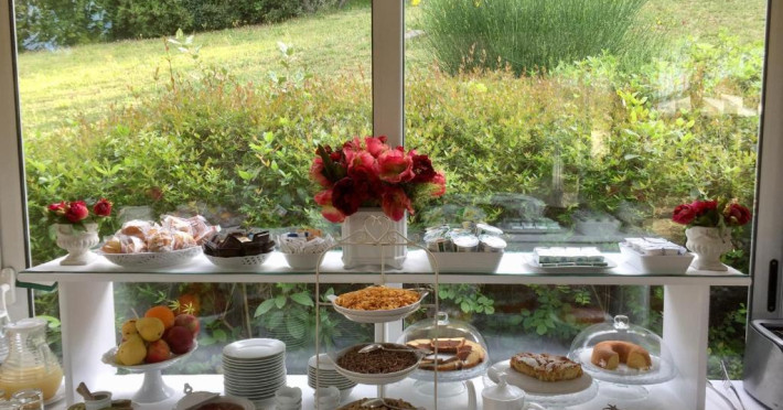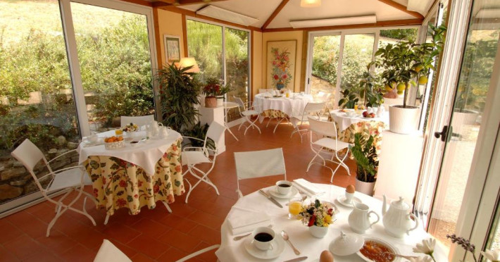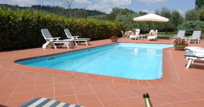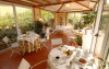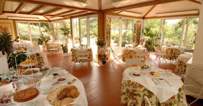 Micul dejun este servit in vase ceramice florentine rafinate, intr-un foisor mare. Piscina este inconjurată de sezlonguri si umbrele de soare.