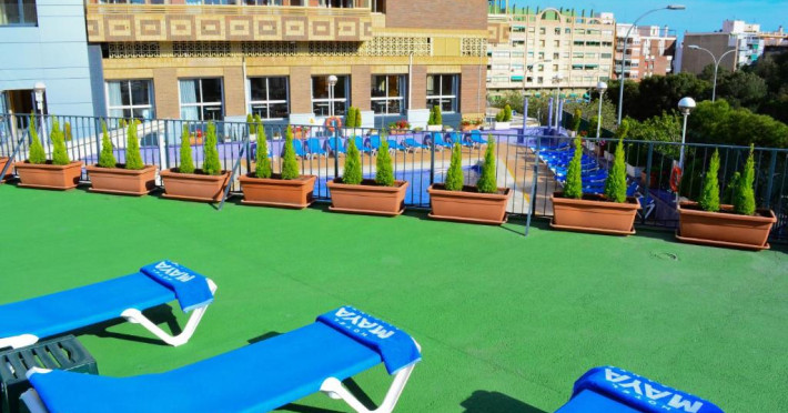 Hotelul Maya este situat la poalele Castelului Santa Barbara, la 5 minute de mers pe jos de plajă din Alicante și la 10 minute de mers pe jos de centru. Oferă o zonă sezonieră in aer liber, acces gratuit la conexiunea WiFi și o sală de fitness cu vedere panoramică.