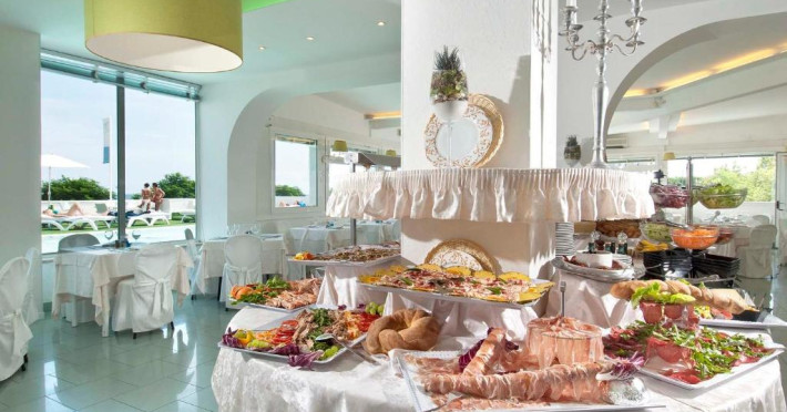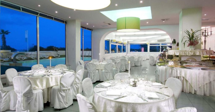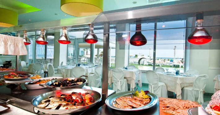 Micul dejun este servit in stil bufet. In plus, puteti savura băuturi calde de la automatele cu autoservire. Ristorante Magellano, restaurantul principal al hotelului, oferă un bufet variat. Localul Ristorante Sala Rex este un pic mai exclusivist si are vedere la Marea Adriatică.