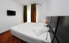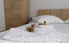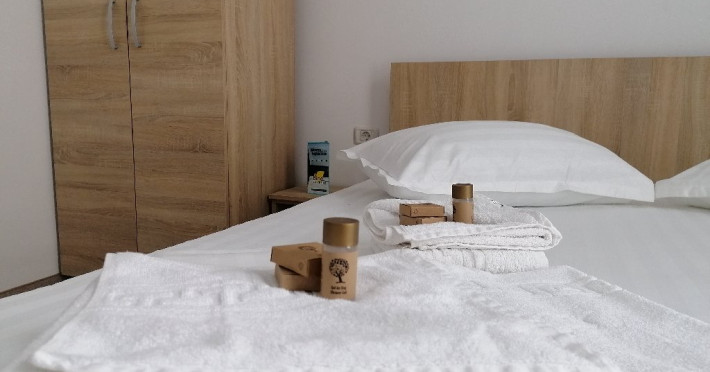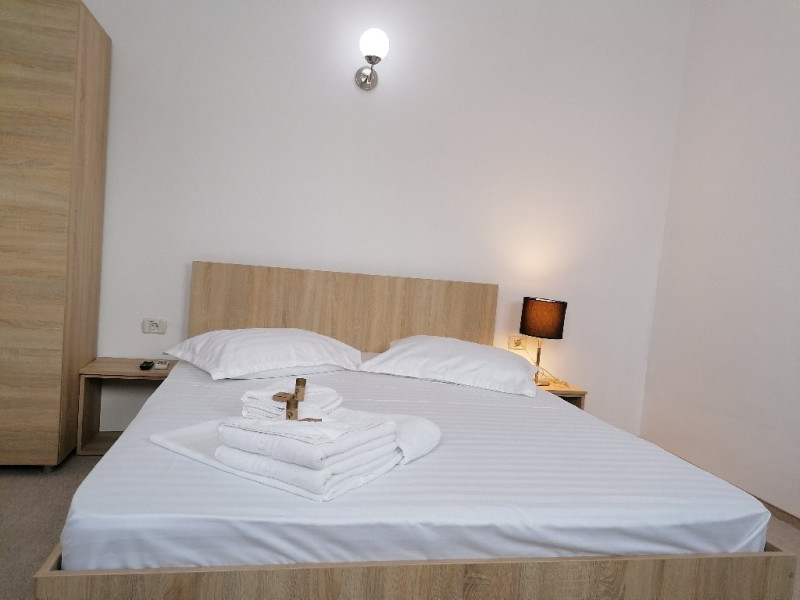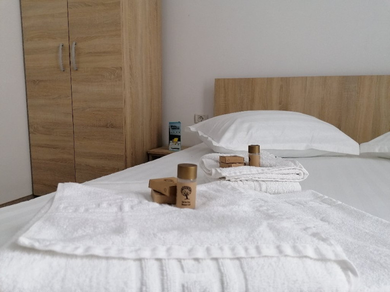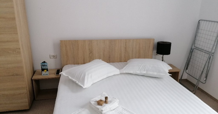 Apartamentul are 2 camere cu cate un 1 pat dublu de (160X200) care promit un somn odihnitor dupa o zi lunga de plaja. Pe langa paturile confortabile, apartamentul este dotat cu un frigider, perfect pentru depozitarea bauturilor si gustarilor. Baia privata ofera toate facilitatile necesare, inclusiv dus, chiuveta si toaleta.