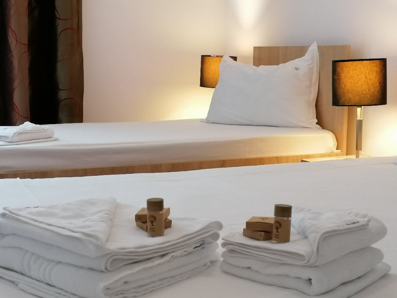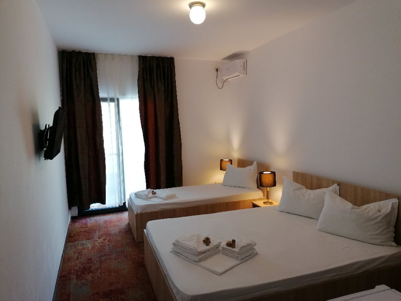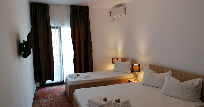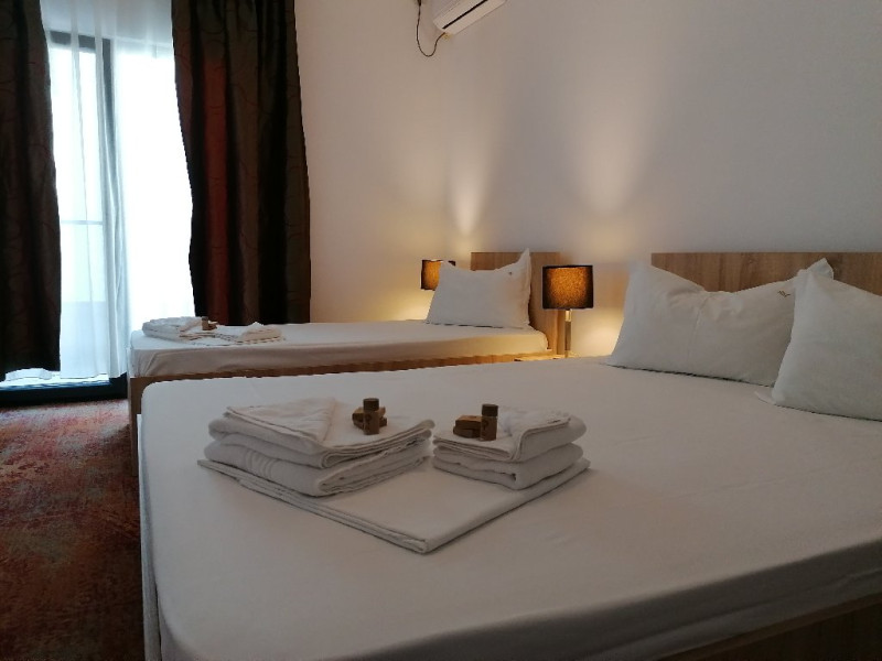 De asemenea, ofera servicii de menaj zilnic pentru a se asigura ca intotdeauna camera dumneavoastra este curata si confortabila.Camera tripla are doua paturi, unul dublu si unul simplu, de o persoana. Pe langa cele doua paturi, camera mai are un dulap, LED TV, frigider, aer conditionat, internet si baie proprie. Si la acest tip de camera poti opta intre balcon sau terasa.