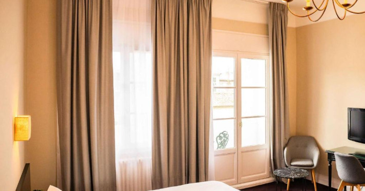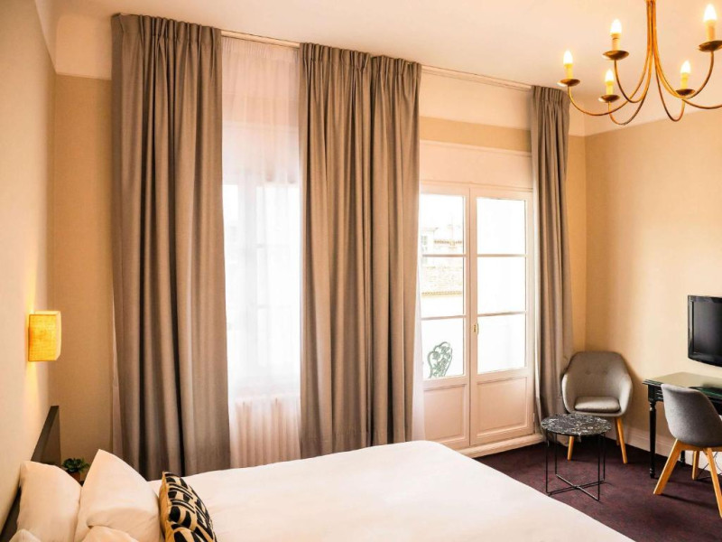 Camerele elegante sunt dotate cu aer condiționat, WiFi gratuit și mobilier contemporan, oferind un spațiu perfect pentru relaxare după o zi de explorare. Restaurantul hotelului servește specialități din bucătăria bască și franceză, iar barul este locul ideal pentru a savura un cocktail in atmosfera rafinată.