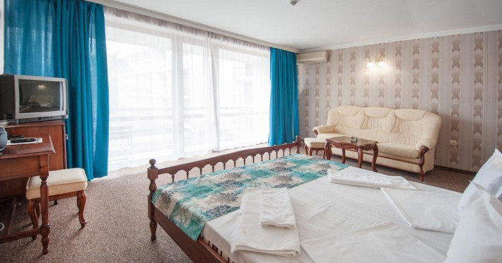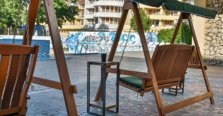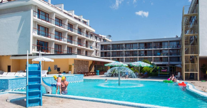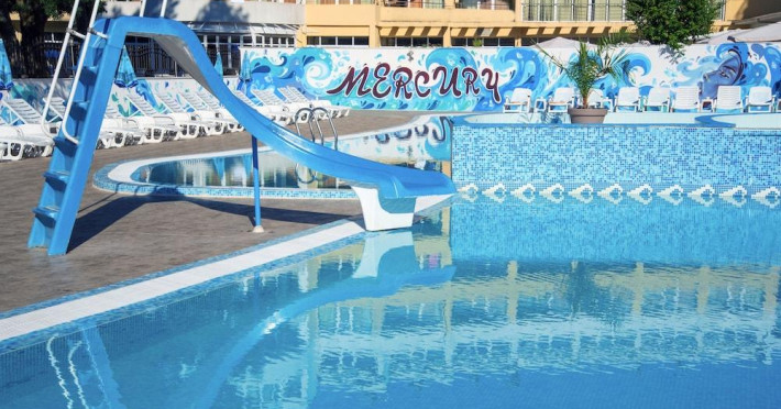Hotel Mercury is 4* star hotel is located in the heart of Sunny beach and suitable for families with children. The hotel offers a variety of services aimed at such tourists – children’s playground, evening animation shows, kids club, mini disco and etc. The Mercury Hotel also has a great restaurant with a large terrace serving international cuisine. The guests can also enjoy a swimming pool with a section for children, free guarded parking, gym and a lot of modern conveniences, that will ensure the unforgettable stay of the guests. There are two bars, one in the lobby, and a colourful cocktail bar, perfect for a pre-dinner drink. The hotel offers premium all-inclusive with selected imported alcoholic drinks.The premium all-inclusive service is from 07.30 h till 23.00 h. International cuisine, including wide range of fresh salads and dishes. Rich assortment of fruits and desserts. Soft drinks and alcohol beverages, beer and wine (local produce). Once per week – Traditional Bulgarian, Italian, dinners. Show cooking during all main meals.Hotel Mercury is 4* star hotel is located in the heart of Sunny beach and suitable for families with children. The hotel offers a variety of services aimed at such tourists – children’s playground, evening animation shows, kids club, mini disco and etc. The Mercury Hotel also has a great restaurant with a large terrace serving international cuisine. The guests can also enjoy a swimming pool with a section for children, free guarded parking, gym and a lot of modern conveniences, that will ensure the unforgettable stay of the guests. There are two bars, one in the lobby, and a colourful cocktail bar, perfect for a pre-dinner drink. The hotel offers premium all-inclusive with selected imported alcoholic drinks.The premium all-inclusive service is from 07.30 h till 23.00 h. International cuisine, including wide range of fresh salads and dishes. Rich assortment of fruits and desserts. Soft drinks and alcohol beverages, beer and wine (local produce). Once per week – Traditional Bulgarian, Italian, dinners. Show cooking during all main meals.