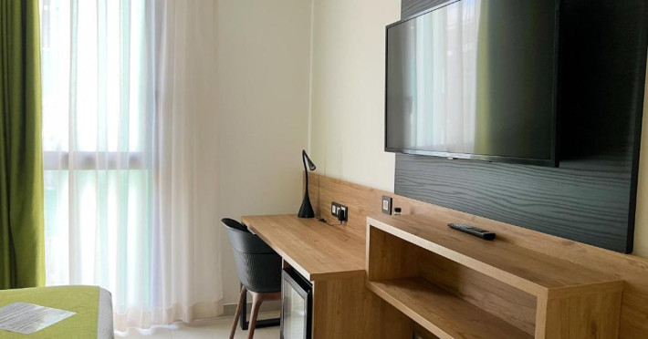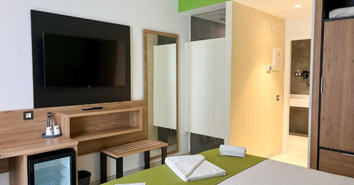 Camerele de la acest hotel sunt dotate cu televizor cu ecran plat cu canale prin satelit și cutie de valori. Baia proprie oferă un duș și un uscător de păr. La Hotel MG Poniente, camerele includ lenjerie de pat și prosoape.