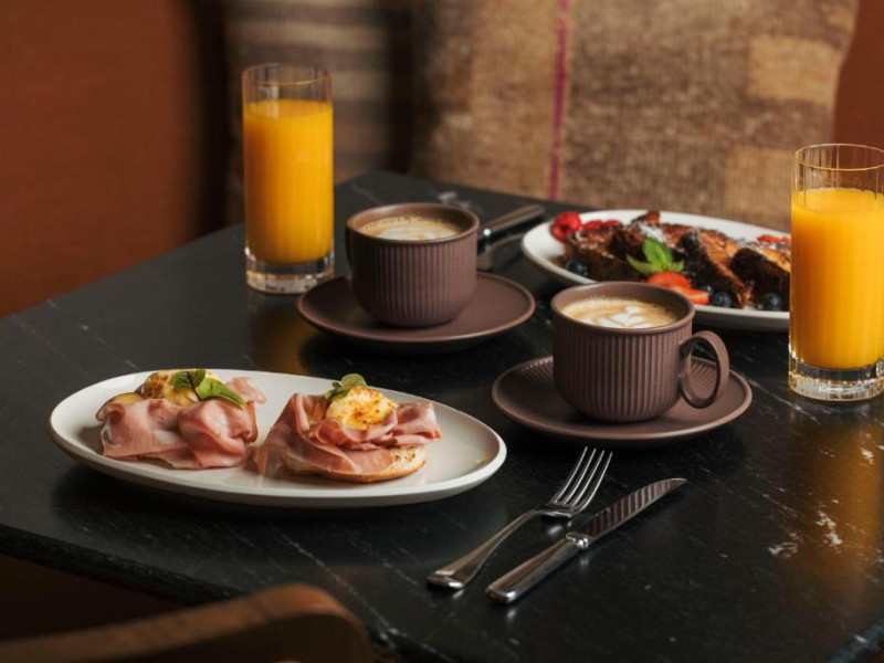 Oaspeții se pot bucura de micul dejun la restaurantul Volta. Bucătărie mediteraneană este servită pentru pranz și cină. Există, de asemenea, Barul Volta cu locuri in aer liber sub arcade - locul perfect pentru cocktailuri, vinuri naturale și preparate de bar, Galeria - o zonă de lounge confortabilă unde vă puteți relaxa in timpul zilei, o bibliotecă cu cărți despre cartierul local și o sală de mese privată.