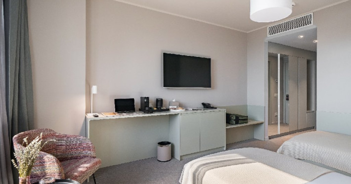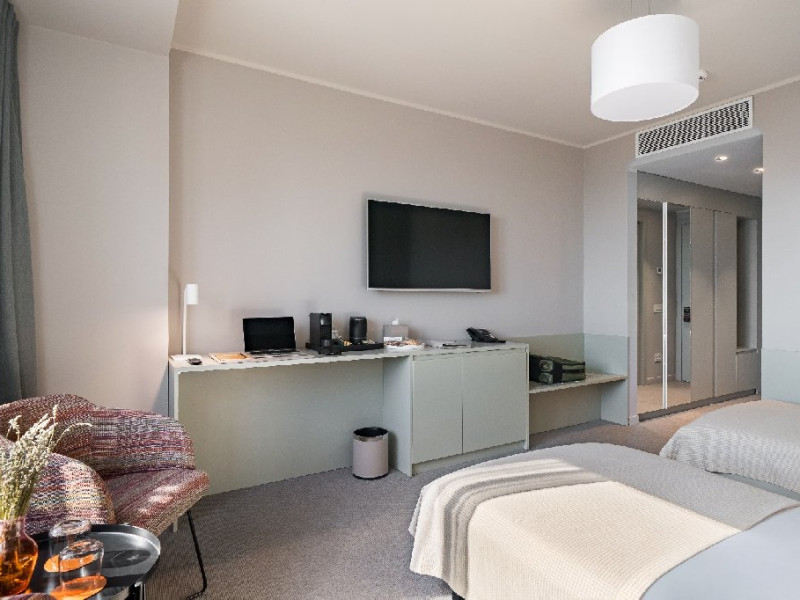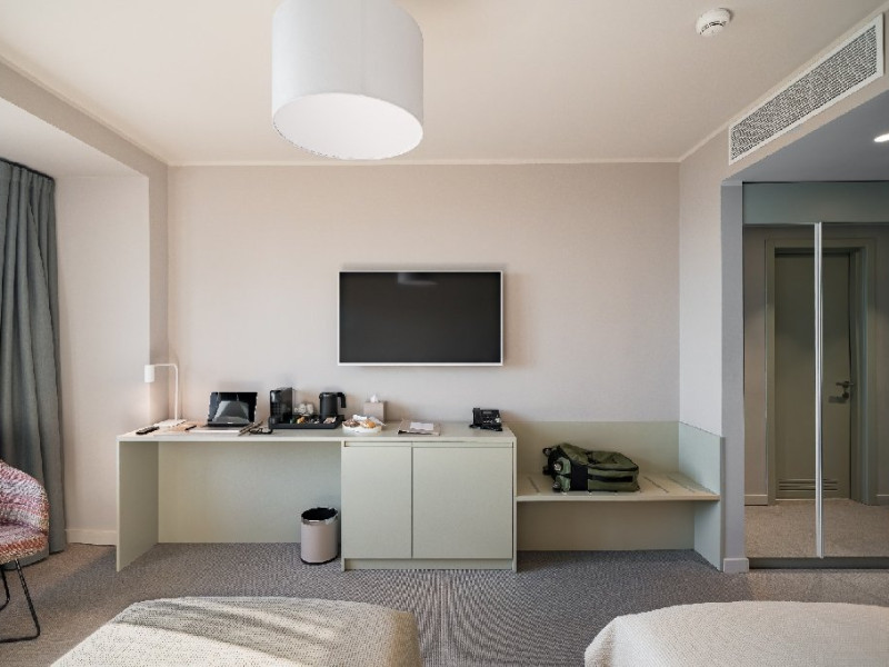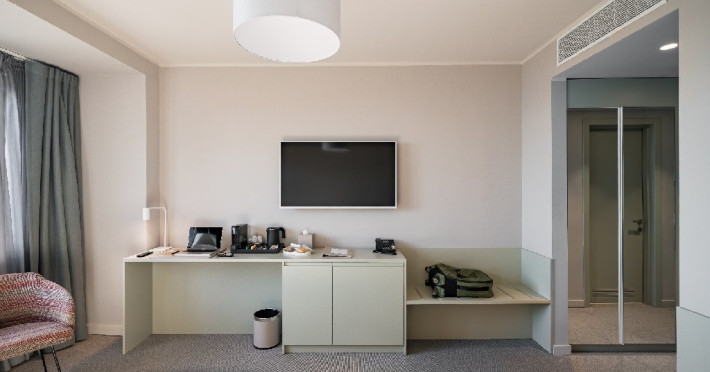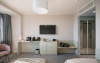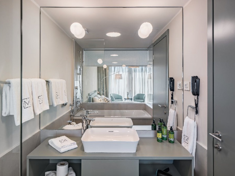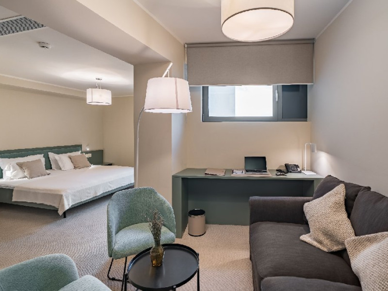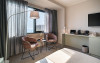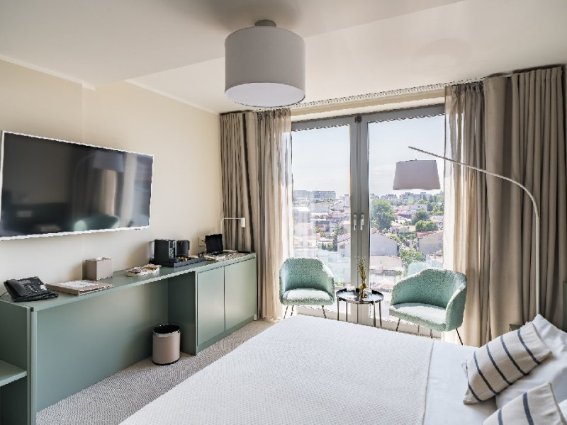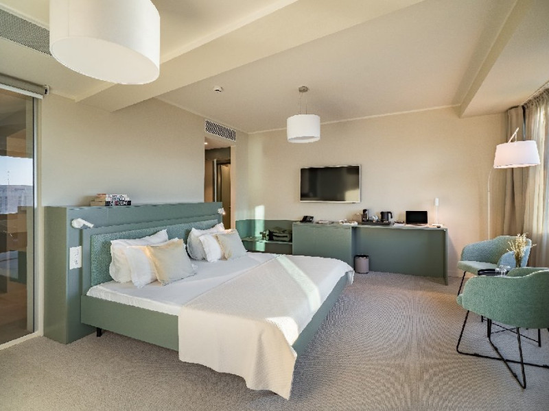 Dotari camere: aer conditionat, TV cu ecran plat, minibar, Wi-Fi gratuit, seif, articole de toaleta si uscator de par, papuci de interior, halat de baie, expresor Nespresso si ceainic.
