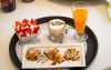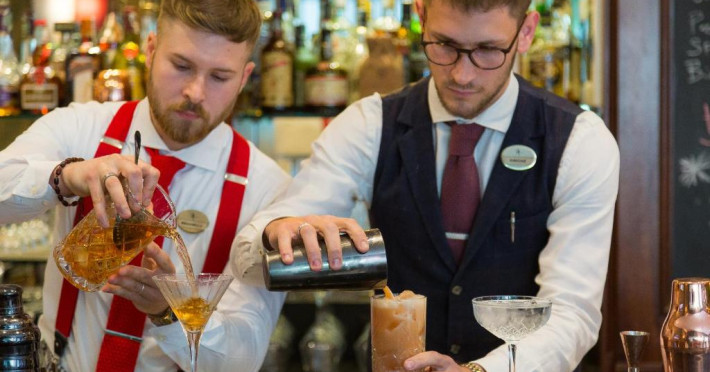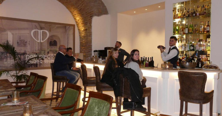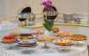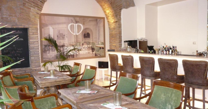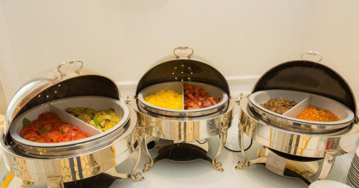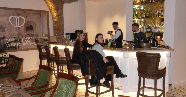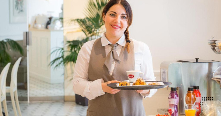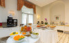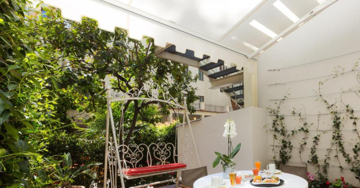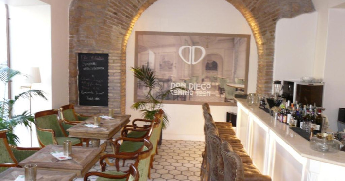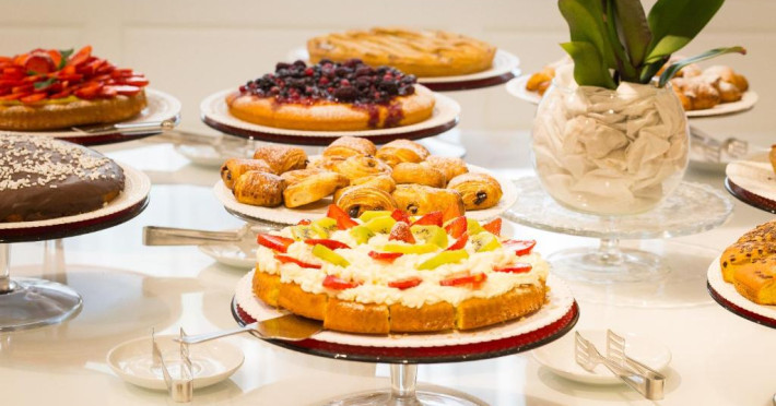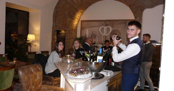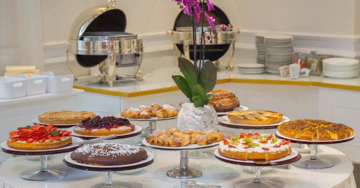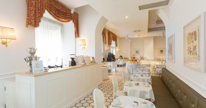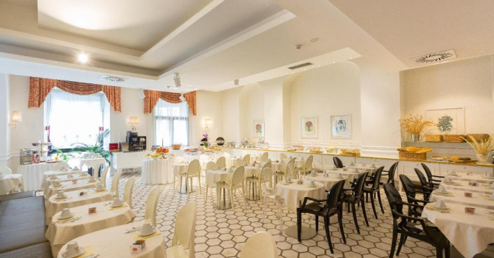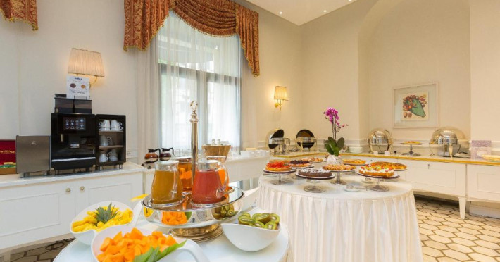 Hotelul oferă un mic dejun internațional bogat tip bufet, disponibil zilnic intre orele 07:30 - 10:30. Acesta conține produse dulci și sărate, inclusiv omletă, mezeluri italiene, fructe proaspete și salate. Oaspeții pot savura preparate culinare ușoare și cocktailuri la barul din grădină, decorat in stil art deco. Proprietatea asigură room service pană la ora 00:00.