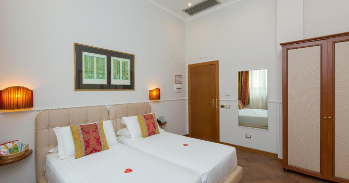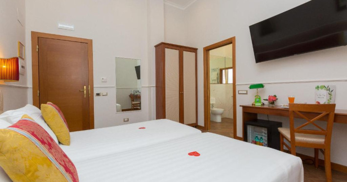 Toate camerele au saltea de designer cu strat superior din spumă cu memorie, lenjerie de pat antialergică, TV cu ecran plat cu canale prin satelit și programe Mediaset Premium și fierbător electric cu o selecție de sortimente de ceai și cafea. Toate camerele sunt curatate săptămanal cu tratament cu ozon.