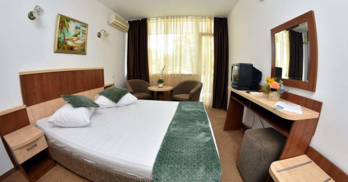 Hotelul este format din parter + 5 etaje, dispune de 4 lifturi.Camera dubla standard - renovate (mobilierul este acelasi) - paturi twin, baie cu dus, uscator de par, aer conditionat, TV-cablu, minibar, balcon.