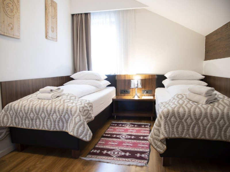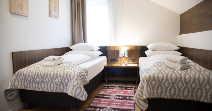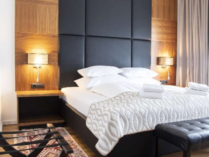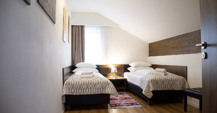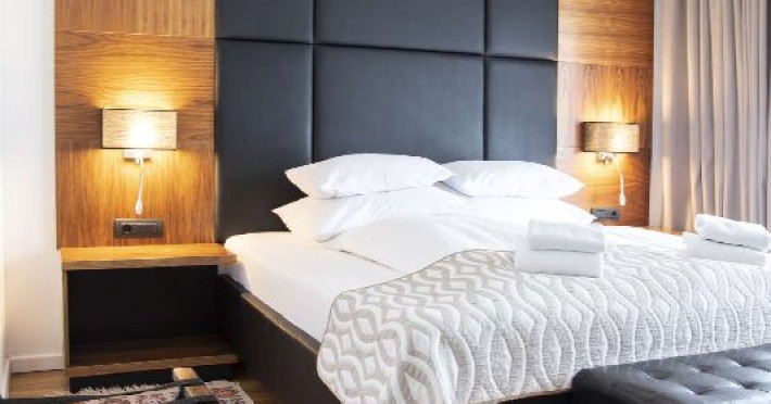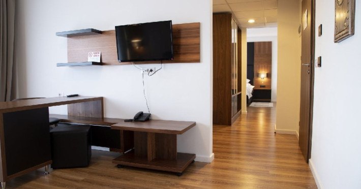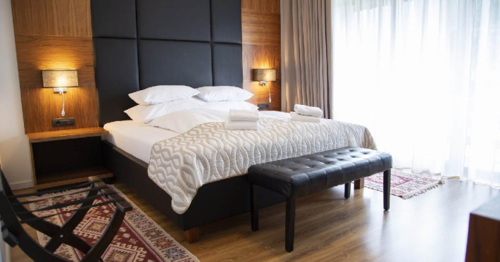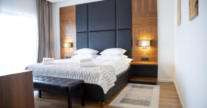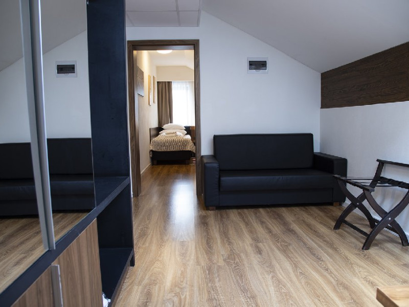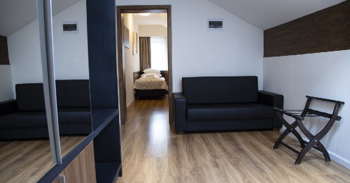 Apartament junior superior cu balcon - suprafata 35 mp + 6 mp balcon, un dormitor cu 2 paturi si un dormitor cu pat matrimonial, design modern.