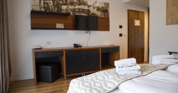 Camera dubla deluxe cu balcon - suprafata 27 mp + 6 mp balcon; pat matrimonial;