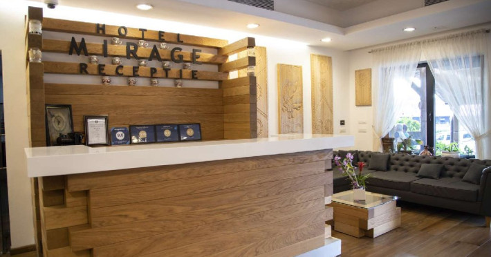 Hotel Mirage Resort dispune de 23 camere duble standard, 4 camere duble deluxe, 2 apartamente junior fara balcon, 1 apartament junior superior, 2 apartamente business si 1 penthouse, aqua park care contine piscina in aer liber pentru adulti, copii un bazin cu apa sarata si un pool bar, restaurant cu o capacitate de 80 persoane.