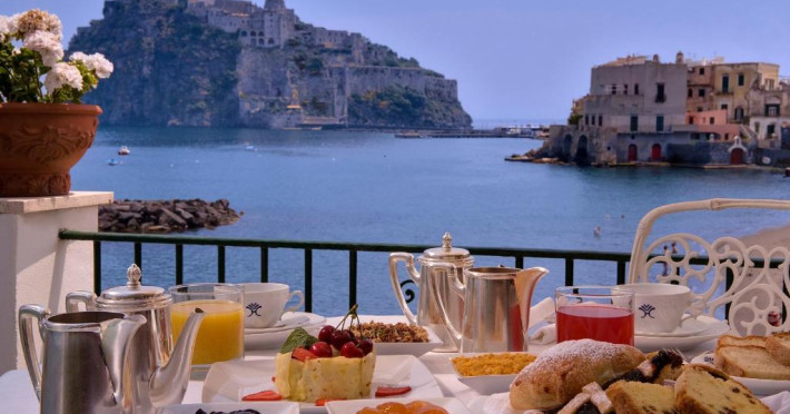 Oferind vedere panoramică la Castelul Aragonez și la Golful Sorrento, Miramare E Castello este situat pe insula Ischia. Acesta oferă un centru spa, o piscină interioară și una in aer liber, precum și camere cu aer condiționat și Wi-Fi gratuit.