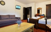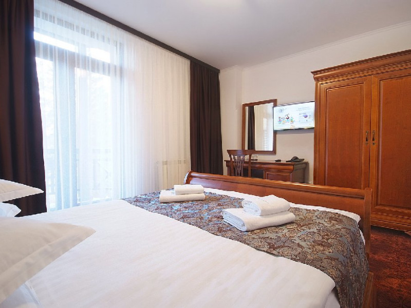 Camera Dubla Superioara. Cu o suprafata de aproximativ 21 mp, cu un mobilier elegant, camera Dubla Superioara va ofera pat matrimonial, balcon privat cu priveliste deosebita si dimensiune generoasa, WI - FI gratuit si baie cu dus.