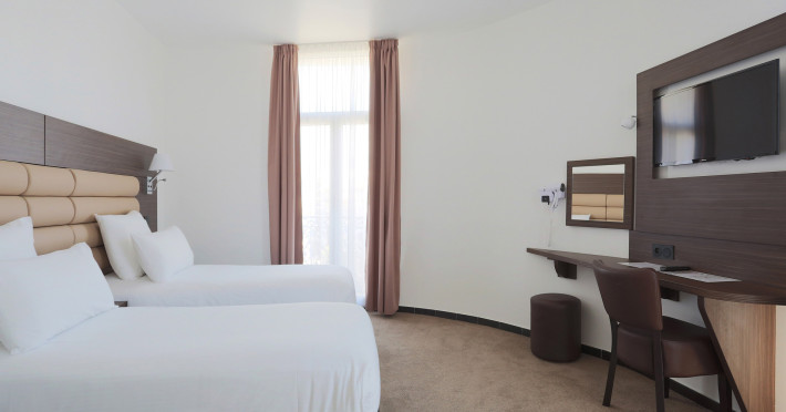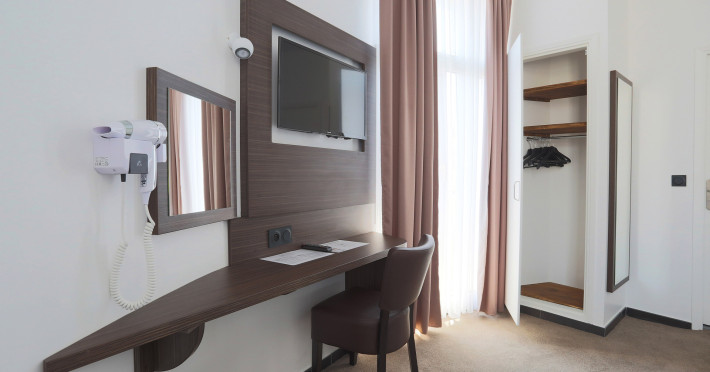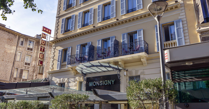 The accommodation Hotel & Apartments Monsigny is situated about 8 km from the airport. The air-conditioned, GPS-verified hotel has a 24h reception (check-in is possible around the clock), a lobby, Wi-Fi, internet access, 2 lifts, cash machine, a jacuzzi, a first aid kit as well as parking spaces (limited and for a fee). You can store your valuables in the safe, and your luggage in the hotel`s storage room. For very young guests, kid`s chairs, highchairs and cots can be provided. There is also an ironing service. For your comfort there is a concierge service. Guests at the accommodation can get a wake-up call from the hotel personnel. The energy supply is 220 and 230 Volts. For conventions and other business meetings, the hotel offers a business centre as well as a conference area with a total of 60 seats, a reception, a video projector, printer, internet access as well as a catering service. In addition, the hotel sells tickets for excursions. Dogs are the only pets allowed in the hotel (on request). For guests on their honeymoon, the hotel has special offers such as personalised rooms/articles or romantic dishes in the restaurant. In your hotel, a lot of focus is placed on sustainability. This includes the provision of soap and shampoo dispensers and ecological meals. American Express, Euro/Master Card and Visa are accepted as means of payment. Due to its barrier-free facilities , such as a hotel door that can be opened manually, separate, barrier-free entrances, wheelchair accessible rooms, a wheelchair accessible lift and wheelchair-accessible bathrooms, the hotel is also suitable for wheelchair users. Catering Breakfast is offered American or from the buffet. Enjoy your lunch à la carte with starters, salads and desserts. Dinner is served as a set meal or à la carte with starters, salads and desserts (extras on request). When booking all-inclusive, one meal in the à la carte restaurant is included. As part of the all-inclusive service, water (24h) as well as coffee and tea (24h) are available at no extra charge. For the meals, there are a restaurant with terrace (Mediterranean, calorie-reduced and gluten-free dishes) and a bar. The drinks menu of the hotel includes water, soft drinks, coffee and tea and wine. Distances- Nearest park: approximately at 200 m