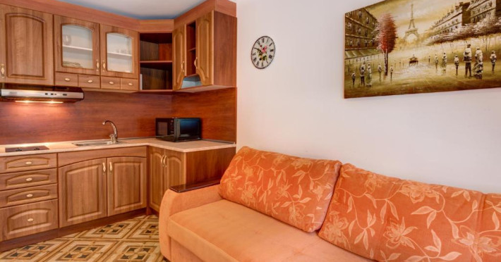 Facilități cameră: chicinetă, cană fierbător, minibar, fier de călcat, cuptor cu microunde, plită pentru gătit, zonă de servit masa, televizor cu canale prin satelit, telefon, incălzire, baie cu duș, uscător de păr, internet Wi-fi.