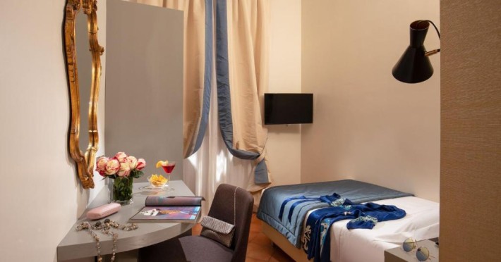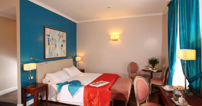Camerele imbină decorul si mobilierul clasic cu facilitătile moderne, precum TV LCD cu canale prin satelit si canale cu vizionare cu plată. Unele camere au vedere la strada principală, iar altele la curtea interioară.