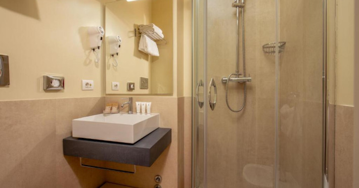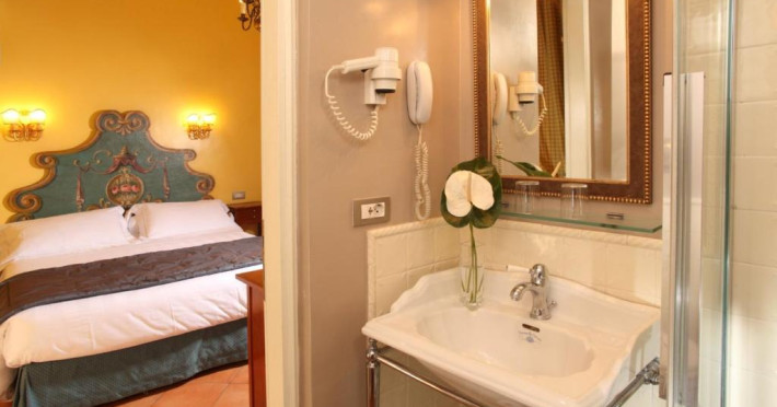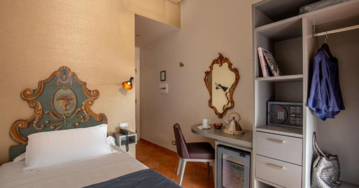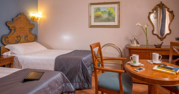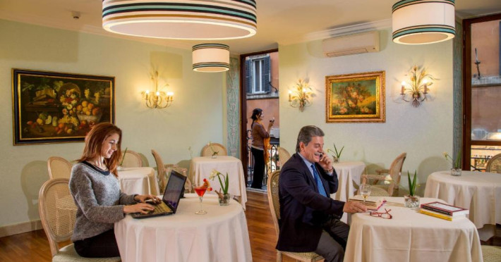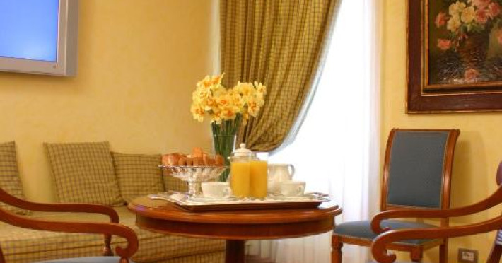 Dimineata este servit un mic dejun bogat, tip bufet. Acesta include cafea italiană traditională, tarte cu fructe, croissante proaspete si produse de patiserie de casă. In holul hotelului există un terminal de internet gratuit.