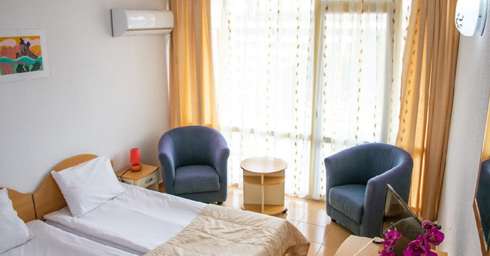 Hotelul Mures** este situat in centrul statiuniiSaturn, intr-o zona renovatala finele anului 2020, langa hotel Prahova si hotel Hora si la aproximativ 100 de metri de plaja.Bucurati-va de serviciile unui hotel de 2*, proaspat modernizat, reprezentand un spatiu decazare de 5 etaje, cu lift, ce dispune de 153 de camere impartite astfel: